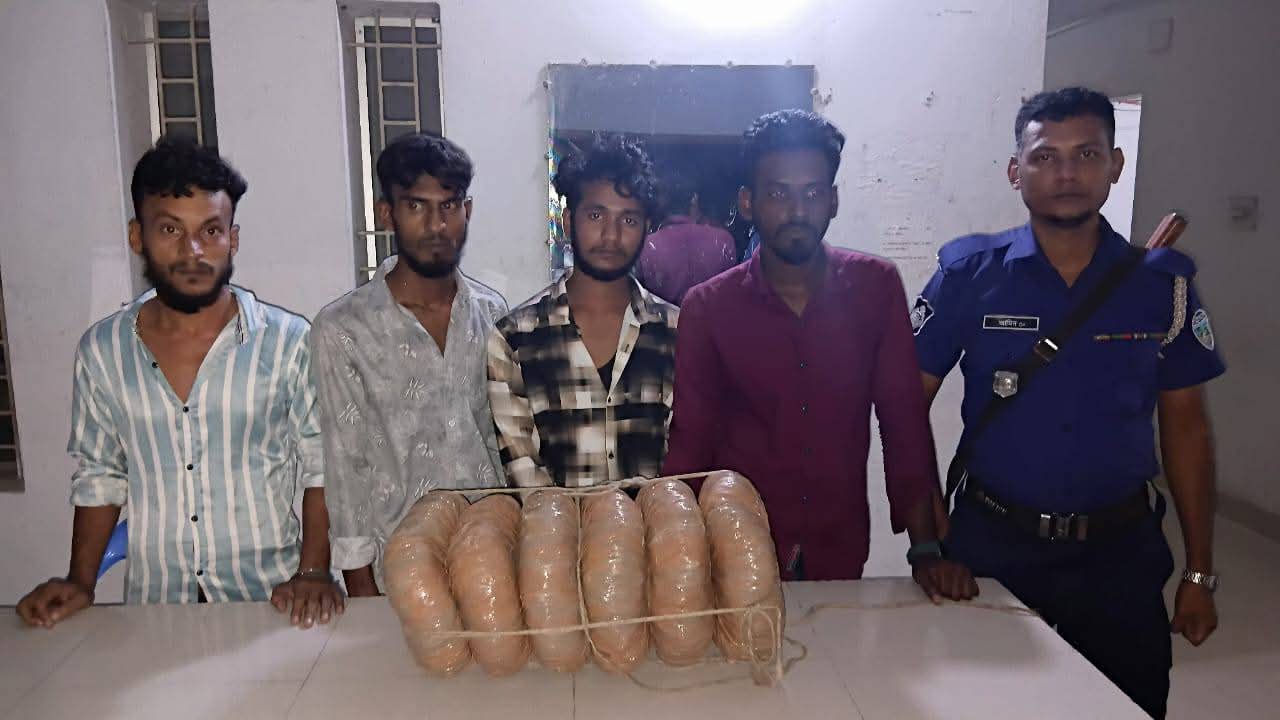 কুমিল্লা বুড়িচংয়ের পোয়াত এলাকায় থানা পুলিশের অভিযানে ১২ কেজি গাঁজাসহ চার মাদক ব্যবসায়ীকে আটক করেছে থানা পুলিশ।শুক্রবার (৮ আগষ্ট) রাতে জেলার বুড়িচং উপজেলার গোবিন্দপুর- পোয়াত সড়কের তিন রাস্তার মাথায় অভিযান চালিয়ে তাদেরকে আটক করে থানা পুলিশ।আটককৃত আসামি মো: শাহাদাত (২৫) আদর্শ সদর উপজেলার শাষনগাছা এলাকার ইয়াছিন মিয়ার ছেলে, মো: নাইম (২০) বুড়িচং উপজেলার বাকশীমুল ইউপির জঙ্গলবাড়ি এলাকার জাহাঙ্গীর মিয়ার ছেলে, মো: অন্তর (২২) একই ইউপির জঙ্গলবাড়ি এলাকার এমদাদুল হকের ছেলে, মো: রুবেল মিয়া (২৮) বিপাড়া উপজেলার দুলালপুর ইউপির নল্লা গ্রামের আবুল হোসেনের ছেলেথানা পুলিশ সুত্রে জানা যায়, গোপন সংবাদের ভিত্তিতে থানার ভারপ্রাপ্ত কর্মকর্তা আজিজুল হকের সার্বিক দিক নির্দেশনায় থানার উপ-পরিদর্শক (এস.আই) নাছিরুল্লাহ রুবেল, সহকারি উপ-পরিদর্শক (এ.এস.আই) শাহপরান ও সঙ্গীয় ফোর্সসহ উপজেলার ষোলনল ইউনিয়নের গোবিন্দপুর এলাকার গোবিন্দপুর-পোয়াত তিন রাস্তার মাথায় একটি সিএনজি চালিত অটোরিকশায় তল্লাশি চালিয়ে ১২ কেজি গাজাসহ ৪ মাদক ব্যবসায়ীকে আটক করে। এসময় তাদের সঙ্গে থাকা কাউসার নামে এক মাদক ব্যাবসায়ী পালিয়ে যায়। এসময় মাদক চোরাচালান কাজে ব্যবহৃত একটি সিএনজি চালিত অটোরিকশা জব্দ করে পুলিশ।ঘটনার সত্যতা নিশ্চিত করে কুমিল্লা বুড়িচং থানার ভারপ্রাপ্ত কর্মকর্তা (ওসি) আজিজুল হক জানান, আটককৃত ও পলাতক আসামীদের বিরুদ্ধে থানায় মাদক আইনে মামলা দায়ের শেষে শনিবার দুপুরে কুমিল্লা আদালতের মাধ্যমে জেল হাজতে প্রেরণ করা হবে বলে তিনি জানান।