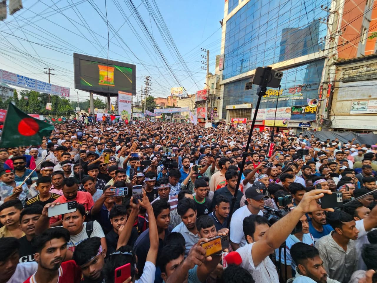 এ দাবির পক্ষে জনসমর্থনের এই ঢল ইতিহাসে নতুন অধ্যায় সৃষ্টি করেছে।মহাসমাবেশে সভাপতিত্ব করেন বিএনপির চেয়ারপারসনের উপদেষ্টা হাজী আমিনুর রশিদ ইয়াছিন। এসময় বক্তব্য রাখেন কুমিল্লা মহানগর জামায়াতের আমীর কাজী দ্বীন মোহাম্মদ, কুমিল্লা দোকান মালিক ফেডারেশনের সভাপতি সৈয়দ জাহাঙ্গীর আলম, সাধারণ সম্পাদক জামাল আহমেদ, কুমিল্লা মহানগর বিএনপির সভাপতি উদবাতুল বারী আবু, সাধারণ সম্পাদক ইউসুফ মোল্লা টিপু, দক্ষিণ জেলা বিএনপি নেতা আমিরুজ্জামান আমির, কুমিল্লা প্রেসক্লাব সভাপতি কাজী এনামুল হক ফারুক, দৈনিক কুমিল্লার কাগজ সম্পাদক আবুল কাশেম হৃদয়, কুমিল্লা মহানগর হেফাজতে ইসলামের সেক্রেটারি ও জেলা কওমি মাদ্রাসা সংগঠনের সেক্রেটারি মাওলানা মুন্নীরুল ইসলাম কাসেমী এবং বাংলাদেশ শ্রমিক কল্যাণ ফেডারেশনের কেন্দ্রীয় সহসভাপতি মুজিবুর রহমান ভূঁইয়া।এছাড়া সমাবেশে অংশ নেন বাংলাদেশ সশস্ত্র বাহিনীর অবসরপ্রাপ্ত কল্যাণ সমিতি, ব্রাহ্মণবাড়িয়া ও চাঁদপুর সমিতিসহ কুমিল্লার বিভিন্ন ব্যবসায়ী, সামাজিক, সাংস্কৃতিক ও রাজনৈতিক সংগঠনের নেতৃবৃন্দ।