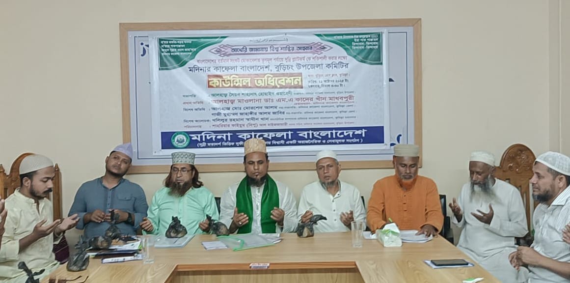 মদিনার কাফেলা বাংলাদেশ বুড়িচং উপজেলা কমিটি গঠিত সভাপতি শাহাদাৎ, সম্পাদক শাহরিয়ার। গাজী জাহাঙ্গীর আলম জাবির, বুড়িচং, কুমিল্লা।। মদিনার কাফেলা বাংলাদেশ কুমিল্লার বুড়িচং উপজেলা কমিটি গঠন উপলক্ষে কাউন্সিল অধিবেশন অনুষ্ঠিত হয়েছে।২১