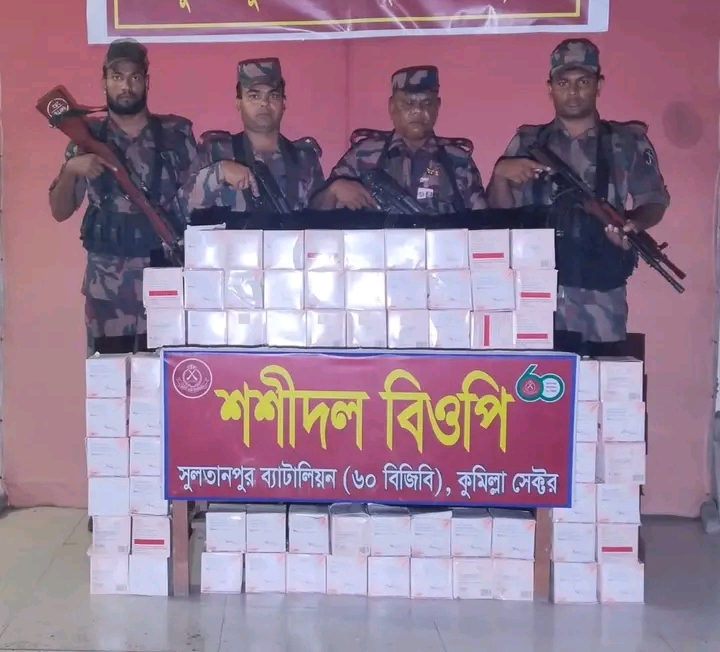 কুমিল্লায় সীমান্ত হতে ১কোটি টাকার ভারতীয় পণ্য জব্দ কুমিল্লার সংবাদ।। সুলতানপুর ব্যাটালিয়ন (৬০ বিজিবি) কর্তৃক প্রায় ০১ কোটি ০৫ লক্ষ টাকা মূল্যের ভারতীয় অবৈধ পণ্য জব্দ,,০৩ নভেম্বর ২০২৫ তারিখে সুলতানপুর