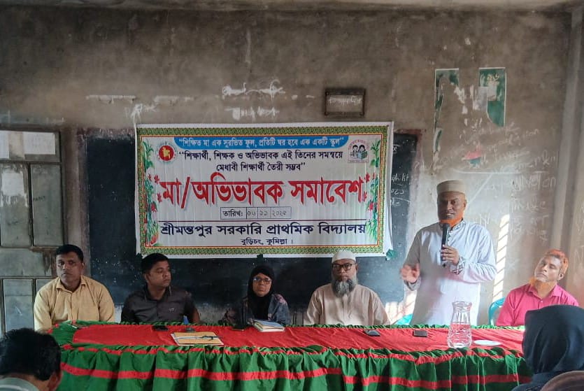 বুড়িচং উপজেলার শ্রীমন্তপুর সরকারি প্রাথমিক বিদ্যালয়ে অভিভাবক সমাবেশ অনুষ্ঠিত গাজী জাহাঙ্গীর আলম জাবির,বুড়িচং প্রতিনিধি।। বুড়িচং উপজেলার শ্রীমন্তপুর সরকারি প্রাথমিক বিদ্যালয়ে মা ও অভিভাবক সমাবেশ অনুষ্ঠিত হয়েছে। ৬ নভেম্বর, বৃহস্পতিবার দুপুরে