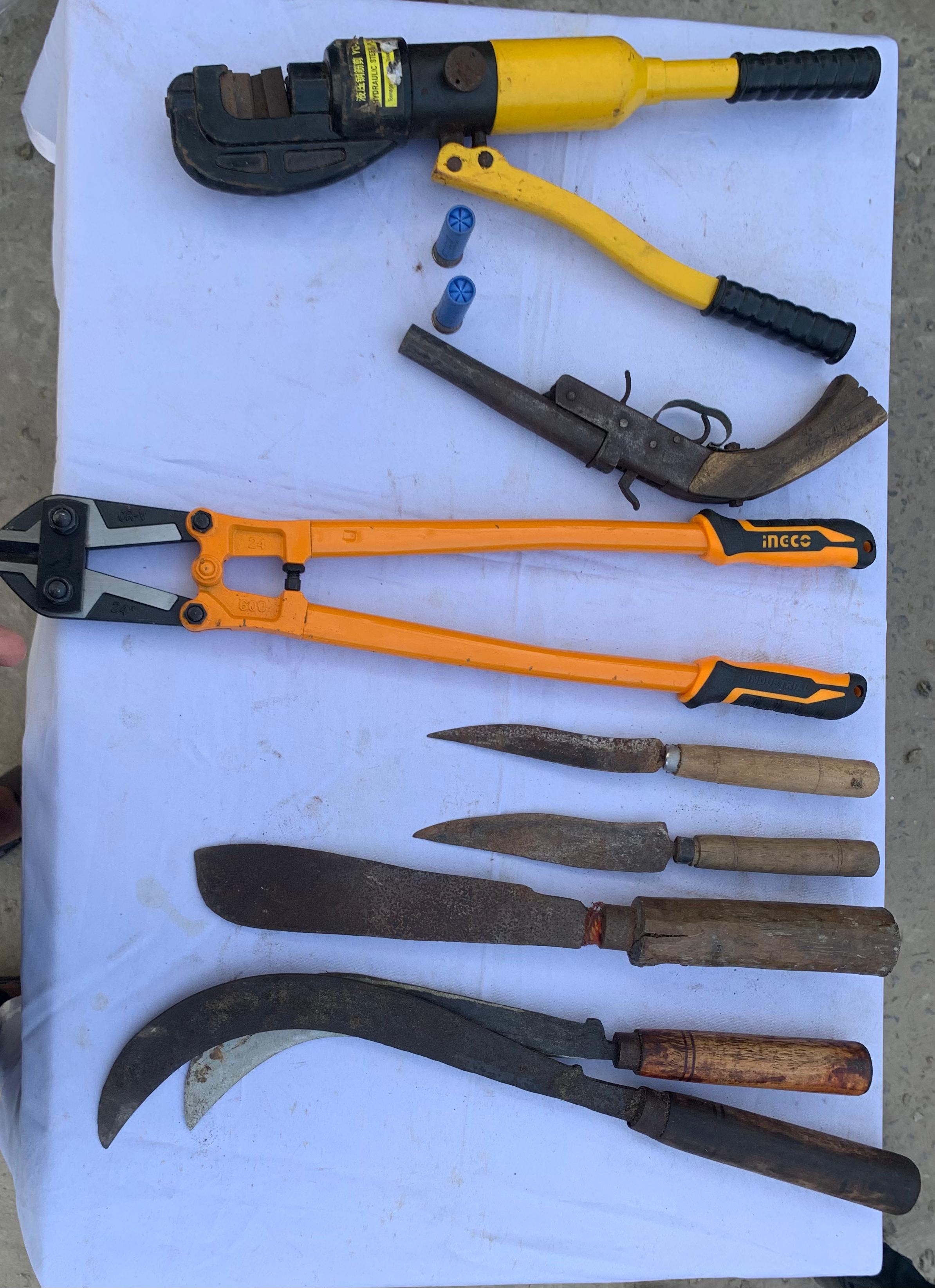 ৩. একটি হলুদ রংয়ের লোহার হাইড্রোলিক কাটার, যা বাটসহ লম্বা ১৯” (উনিশ) ইঞ্চি;