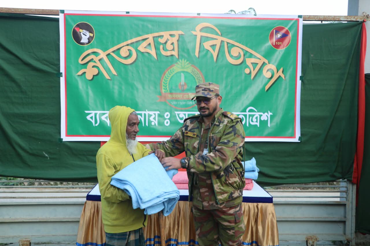 গত ৯ জানুয়ারি থেকে ১৩ জানুয়ারি পর্যন্ত বাংলাদেশ সেনাবাহিনীর সার্বিক ব্যবস্থাপনায় এ শীতবস্ত্র বিতরণ কার্যক্রম পরিচালিত হয়।