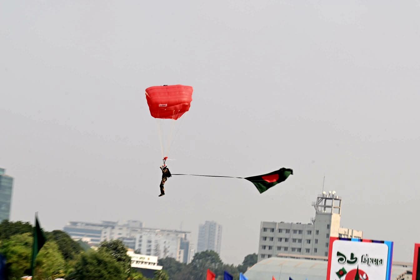 আমরা এ আনন্দ দেশের সকল জনগণের সঙ্গে ভাগ করে নিতে চাই।’মহান বিজয় দিবসে সর্বাধিক পতাকা হাতে প্যারাস্যুটিংয়ে অংশ নেন চৌধুরী আশিক মাহমুদ বিন হারুন, মোহাম্মদ আসাদুজ্জামান, খন্দকার জাহাঙ্গীর আলম, মো. নান্নু মিয়া, মো. মাহমুদুল ইসলাম, মোহাম্মদ শিহাব শেখ, মো. আরিফুর রহমান, ফরহাদ আহমেদ, মো. নজরুল ইসলাম, মো. কামরুল হাসান, মো. শফিকুল ইসলাম, মো. আশিকুল ইসলাম, মো. সিরাজুল হক, মোহাম্মদ আলমগীর কবির, মো. রমজান আলী,