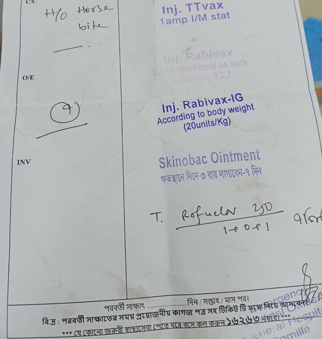 এদিকে আহত ব্যক্তিরা চিকিৎসা নিতে গিয়ে নতুন ভোগান্তির মুখে পড়ছেন। কুমিল্লা সদর হাসপাতালে জলাতঙ্ক (র্যাবিস) ভ্যাকসিনের সংকট রয়েছে বলে ভুক্তভোগীরা অভিযোগ করেছেন। হাসপাতাল থেকে সময়মতো ভ্যাকসিন না পেয়ে অনেককে বাইরে থেকে বেশি দামে ভ্যাকসিন সংগ্রহ করতে হচ্ছে। কেউ কেউ স্বাভাবিক দামের তুলনায় দ্বিগুণ অর্থ ব্যয় করতে বাধ্য হচ্ছেন। শুধু ঘোড়ার কামড় নয়, প্রতিদিন কুকুর ও বিড়ালের কামড় বা আঁচড়ে আক্রান্ত বহু মানুষ সদর হাসপাতালে এসে দীর্ঘ সময় অপেক্ষা করেও প্রয়োজনীয় ভ্যাকসিন পাচ্ছেন না। ফলে স্বাস্থ্যঝুঁকি বাড়ছে এবং সাধারণ মানুষের মধ্যে চরম উদ্বেগ সৃষ্টি হচ্ছে।এ বিষয়ে স্থানীয় আইনজীবী ও সচেতন নাগরিকরা বলেন, অবাধে চলাচলকারী প্রাণীগুলোকে মানবিক উপায়ে নিরাপদ স্থানে সরিয়ে নেওয়া, তাদের স্বাস্থ্য পরীক্ষা করা এবং মানুষের নিরাপত্তা নিশ্চিত করা জরুরি।