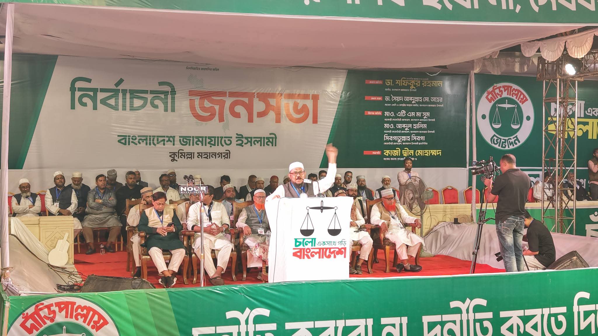 বাংলাদেশ জামায়াতে ইসলামী আমীর ডা.শফিকুর রহমানশুক্রবার কুমিল্লা পৃথক ২টি জনসভায় প্রধান অতিথি বক্তব্য তিনি এ কথা।তিনি সন্ধা ৬টায় কুমিল্লা লাকসাম স্টেডিয়াম রাত ৮টায় কুমিল্লা টাউন হল মাঠে ১১ দলীয় জোটের সমাবেশে তিনি বক্তব্য রাখেন। সমাবেশে বিশেষ অতিথি বক্তব্য রাখেন, জামায়াতে ইসলামীর নায়েবে আমীর ও সাবেক সংসদ সদস্য ডা.সৈয়দ আব্দুল্লাহ মোহাম্মদ তাহের, সেক্রেটারী জেনারেল সাবেক সংসদ সদস্য অধ্যাপক মিয়া গোলাম পরওয়ার, সহকারি সেক্রেটারী জেনারেল ও কুমিল্লা অঞ্চল পরিচালক মাওলানা এটিএম মাসুম, ডাকসুর ভিপি আবু সাদিক কাইয়ুম,এনসিপির দক্ষিণ অঞ্চলের মুখ্য সমন্বয়ক কুমিল্লা -৪ আসনের প্রার্থী হাসনাত আবদুল্লাহ।