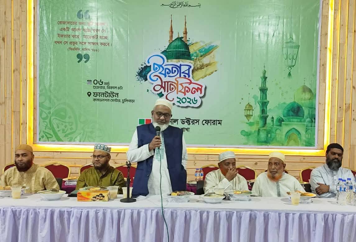 পবিত্র মাহে রমজানের গুরুত্ব ও তাৎপর্য তুলে ধরে আলোচনা সভা ও ইফতার মাহফিলের আয়োজন করেছে ন্যাশনাল ডক্টরস ফোরাম (এনডিএফ) কুমিল্লা জেলা শাখা। শুক্রবার (৬ মার্চ) বিকেলে কুমিল্লা নগরীর ঢুলিপাড়ায় অবস্থিত ফান টাউন মিলনায়তন-এ এ অনুষ্ঠান অনুষ্ঠিত হয়। এতে চিকিৎসক, শিক্ষাবিদ ও বিভিন্ন শ্রেণি-পেশার মানুষ অংশগ্রহণ করেন। এনডিএফ কুমিল্লা জেলা শাখার সভাপতি ডা. জহির উদ্দিন মোহাম্মদ বাবরের সভাপতিত্বে অনুষ্ঠিত আলোচনা সভায় প্রধান অতিথি ছিলেন এনডিএফ-এর কেন্দ্রীয় সভাপতি অধ্যাপক ডা. নজরুল ইসলাম। প্রধান বক্তা ছিলেন বাংলাদেশ জামায়াতে ইসলামী কুমিল্লা মহানগর আমীর কাজী দ্বীন মোহাম্মদ। প্রধান অতিথির বক্তব্যে অধ্যাপক ডা. নজরুল ইসলাম বলেন, পবিত্র মাহে রমজান মানুষের আত্মশুদ্ধি, সংযম ও মানবসেবার শিক্ষা দেয়। তিনি বলেন, একজন চিকিৎসকের দায়িত্ব শুধু চিকিৎসা প্রদানেই সীমাবদ্ধ নয়; বরং মানবতার সেবায় আন্তরিকতা ও নৈতিকতার সঙ্গে কাজ করাও অত্যন্ত গুরুত্বপূর্ণ। রমজানের শিক্ষাকে ধারণ করে চিকিৎসকদের দরিদ্র ও অসহায় মানুষের পাশে দাঁড়ানোর আহ্বান জানান তিনি।