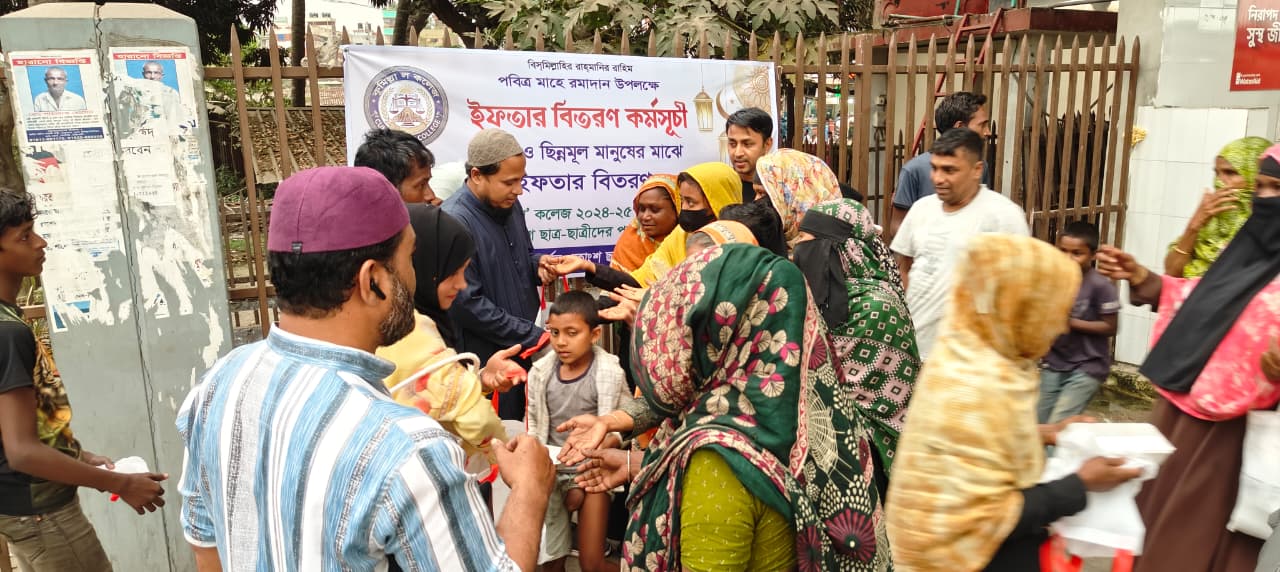 আমাদের এই ক্ষুদ্র প্রয়াস যদি কারো মুখে হাসি ফোটায়, সেখানেই আমাদের সার্থকতা।”ভয়েস ওভার (V/O): এই মানবিক উদ্যোগে সম্মুখ সারিতে ছিলেন শেখ সুবর্ণা সুইটি, কাজী কাউছার উদ্দিন, আনিছুর রহমান শেখ, মো: আব্দুল জলিল ও নার্গিস আক্তার লিপি এবং শাহাদাত হোসেন। দূরে অবস্থান করেও কলেজের আরও অনেক শিক্ষার্থী মানসিকভাবে এই ইফতার কর্মসূচিতে সমর্থন জুগিয়েছেন।