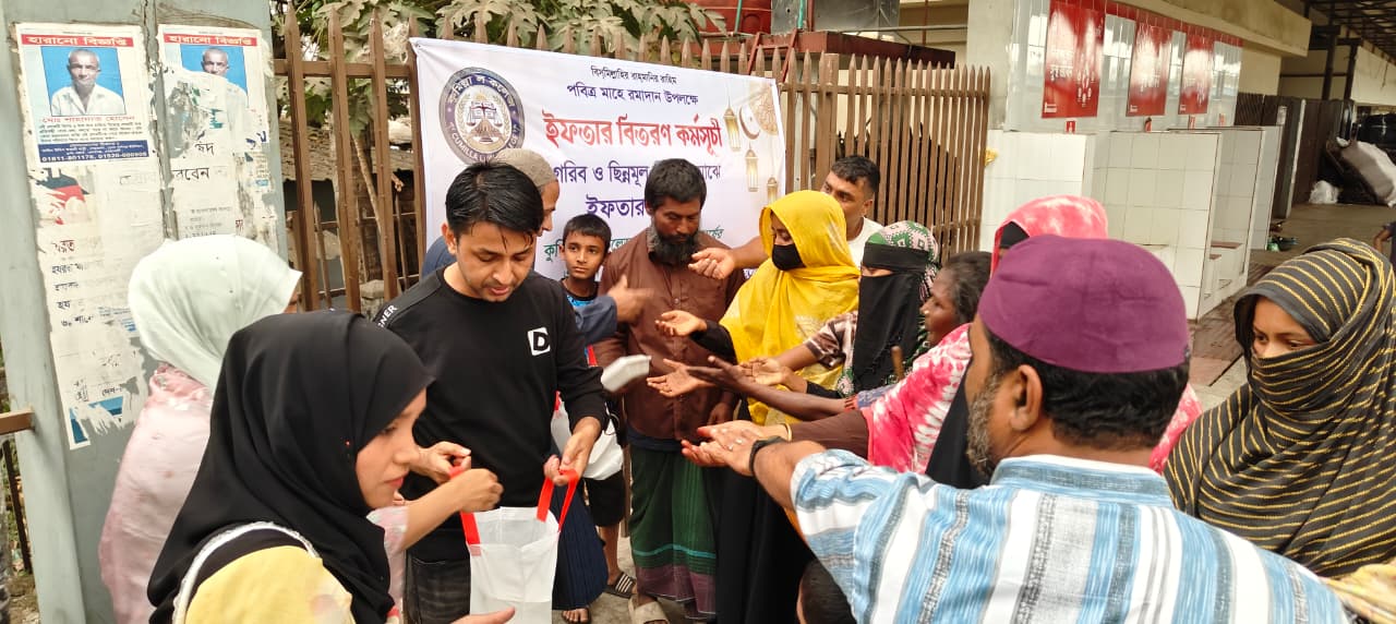 ভিজ্যুয়াল (ব্যানার ও ইফতার বিতরণের দৃশ্য) কুমিল্লা আইন কলেজের ২০২৪-২৫ শিক্ষাবর্ষের একদল শিক্ষার্থীদের আয়োজনে আজ শুক্রবার প্রায় ১৫০ জন দুস্থ ও ছিন্নমূল মানুষের হাতে তুলে দেওয়া হয় ইফতার প্যাকেট। সুশৃঙ্খলভাবে লাইনে দাঁড়িয়ে সাধারণ মানুষ এই উপহার গ্রহণ করেন।বাইট (শিক্ষার্থী/আয়োজক): কুমিল্লা আইন কলেজের শিক্ষার্থী আনিছুর রহমান শেখ জানান “আমরা আমাদের সাধ্যমতো চেষ্টা করেছি রেলস্টেশনের এই অসহায় মানুষগুলোর সাথে ইফতার ভাগ করে নিতে।