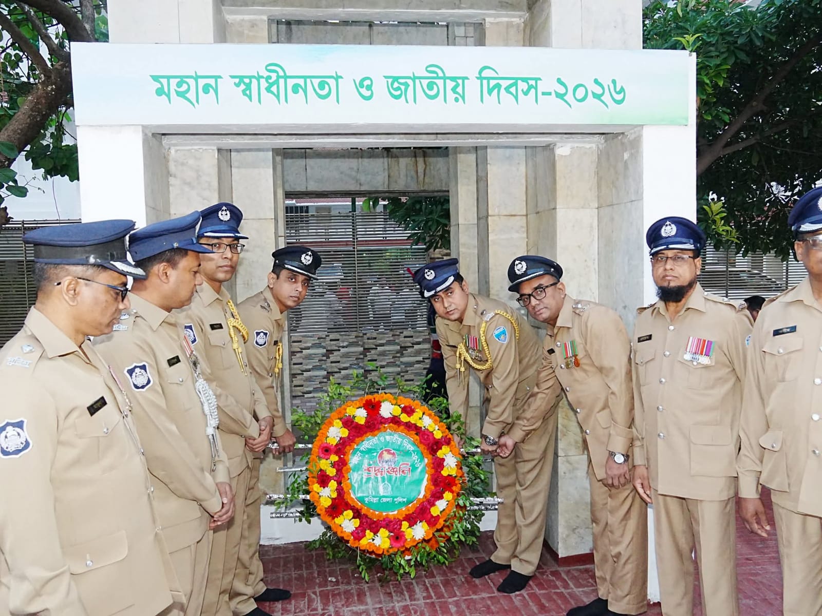 জনাব রাশেদুল হক চৌধুরী; জনাব ইশতিয়াক হাসান আমীন, অতিরিক্ত পুলিশ সুপার (ডিএসবি); জনাব পংকজ বড়ুয়া, অতিরিক্ত পুলিশ সুপার (ক্রাইম এন্ড অপস্); জনাব সাইফুল মালিক, অতিরিক্ত পুলিশ সুপার (সদর সার্কেল) সহ জেলা পুলিশের অন্যান্য ঊর্ধ্বতন কর্মকর্তাবৃন্দ। কুমিল্লা জেলা পুলিশ গভীর শ্রদ্ধার সাথে স্মরণ করছে স্বাধীনতা সংগ্রামে আত্মোৎসর্গকারী সকল বীর শহীদ ও মুক্তিযোদ্ধাদের।
