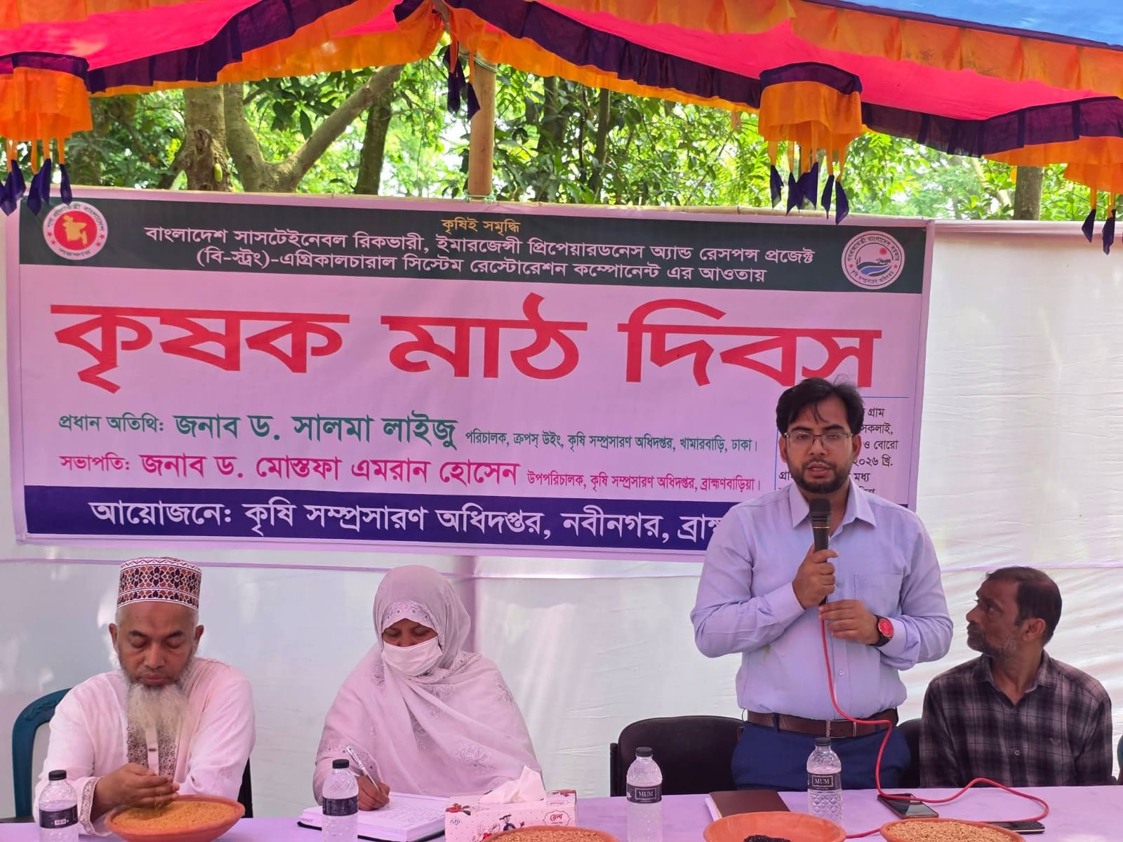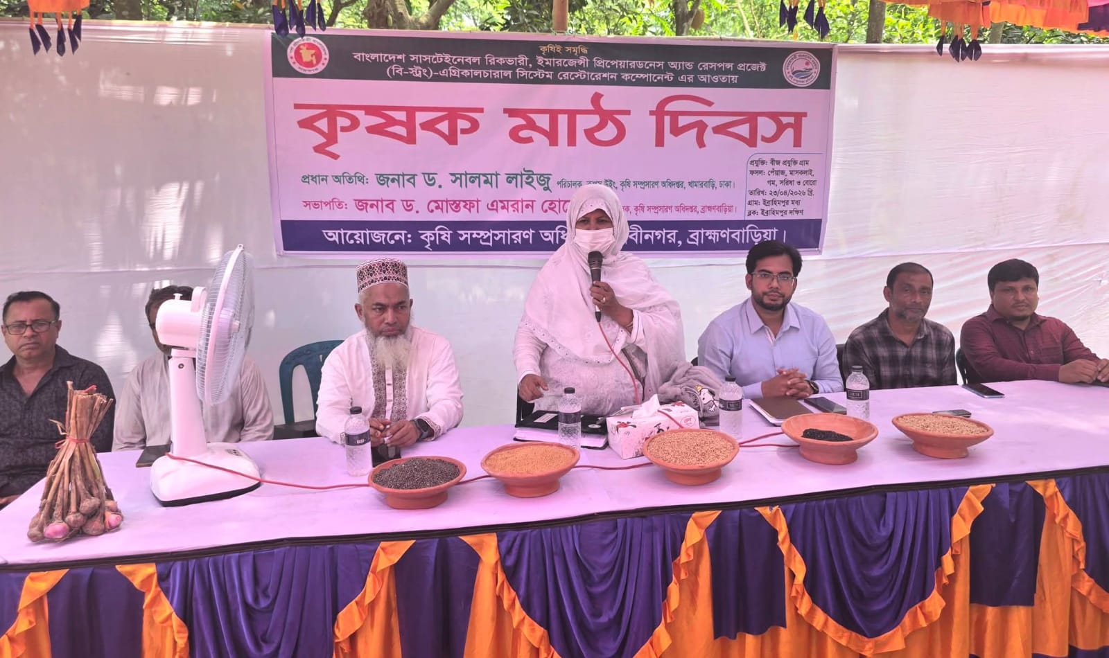 বাংলাদেশ সাসটেইনেবল রিকভারি, ইমার্জেন্সি প্রিপেয়ার্ডনেস অ্যান্ড রেসপন্স প্রজেক্ট (বি স্ট্রং)-এর আওতায় ব্রাহ্মণবাড়িয়ার নবীনগর উপজেলার ইব্রাহিম ইউনিয়নে বীজ প্রযুক্তি গ্রাম প্রদর্শনীর ওপর এক বর্ণাঢ্য মাঠ দিবস অনুষ্ঠিত হয়েছে। এতে শতাধিক কৃষকের স্বতঃস্ফূর্ত অংশগ্রহণ লক্ষ্য করা যায়। অনুষ্ঠানে উপজেলা কৃষি অফিসার কৃষিবিদ মো: জাহাঙ্গীর আলম লিটনের সঞ্চালনায় সভাপতিত্ব করেন জেলা কৃষি সম্প্রসারণ অধিদপ্তরের উপপরিচালক ড. মোস্তফা এমরান হোসেন। প্রধান অতিথি হিসেবে উপস্থিত ছিলেন কৃষি সম্প্রসারণ অধিদপ্তরের পরিচালক (ক্রপস উইং) কৃষিবিদ ড. সালমা লাইজু।মাঠ দিবসে বক্তারা আধুনিক কৃষি প্রযুক্তি, উন্নতমানের বীজ উৎপাদন এবং কৃষকদের সক্ষমতা বৃদ্ধির ওপর গুরুত্বারোপ করেনত।