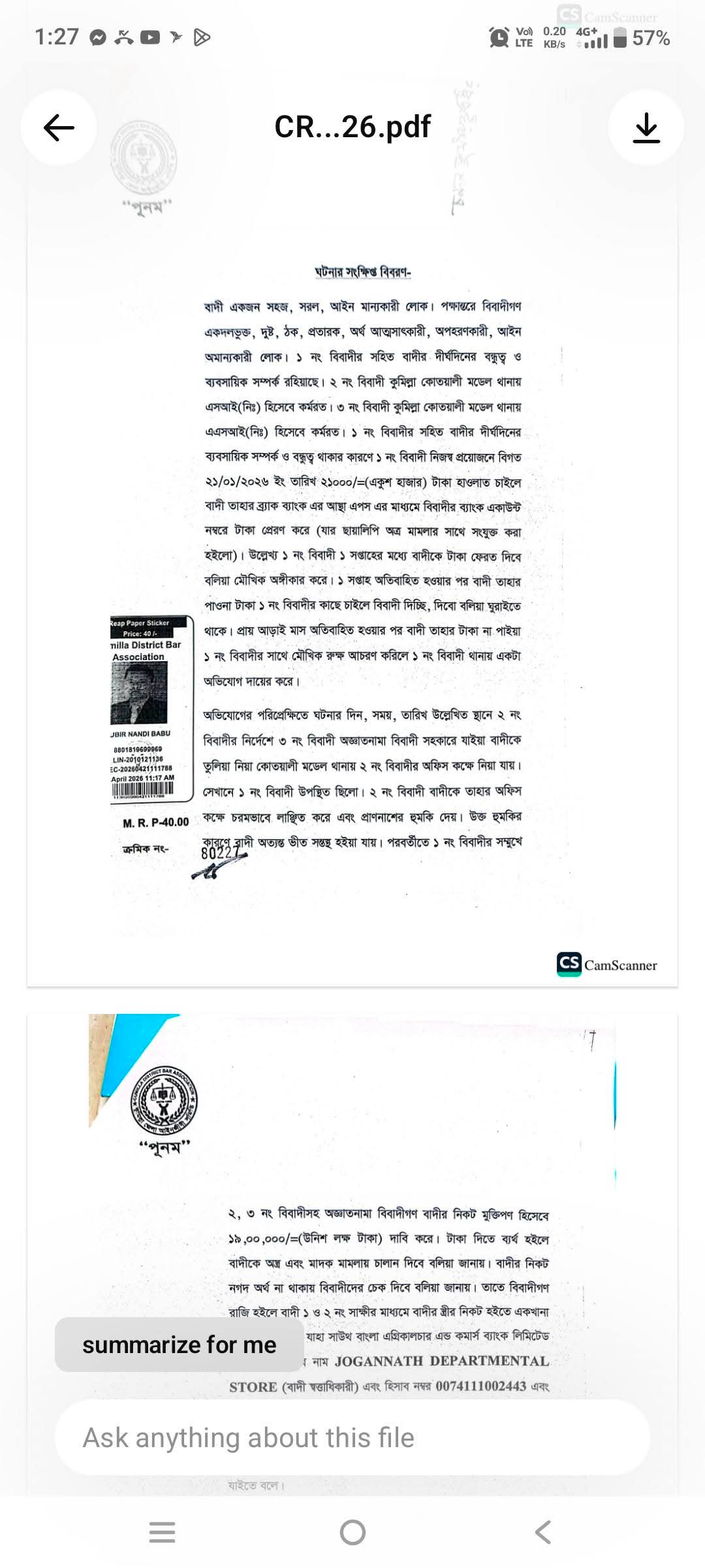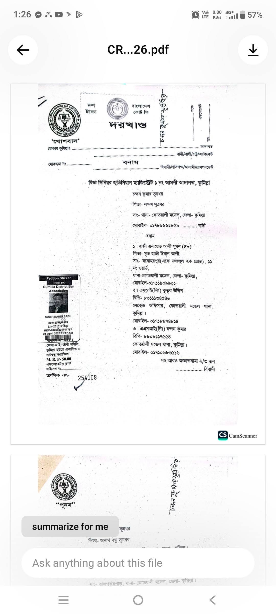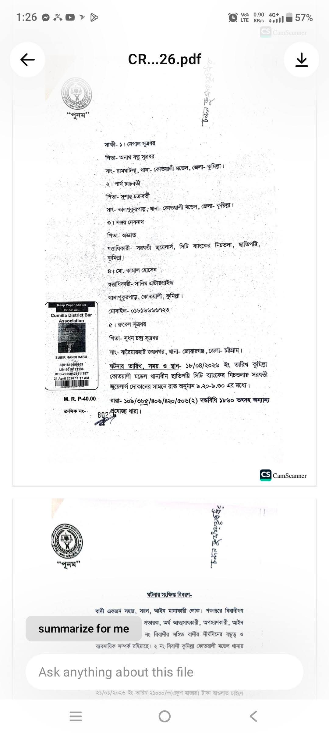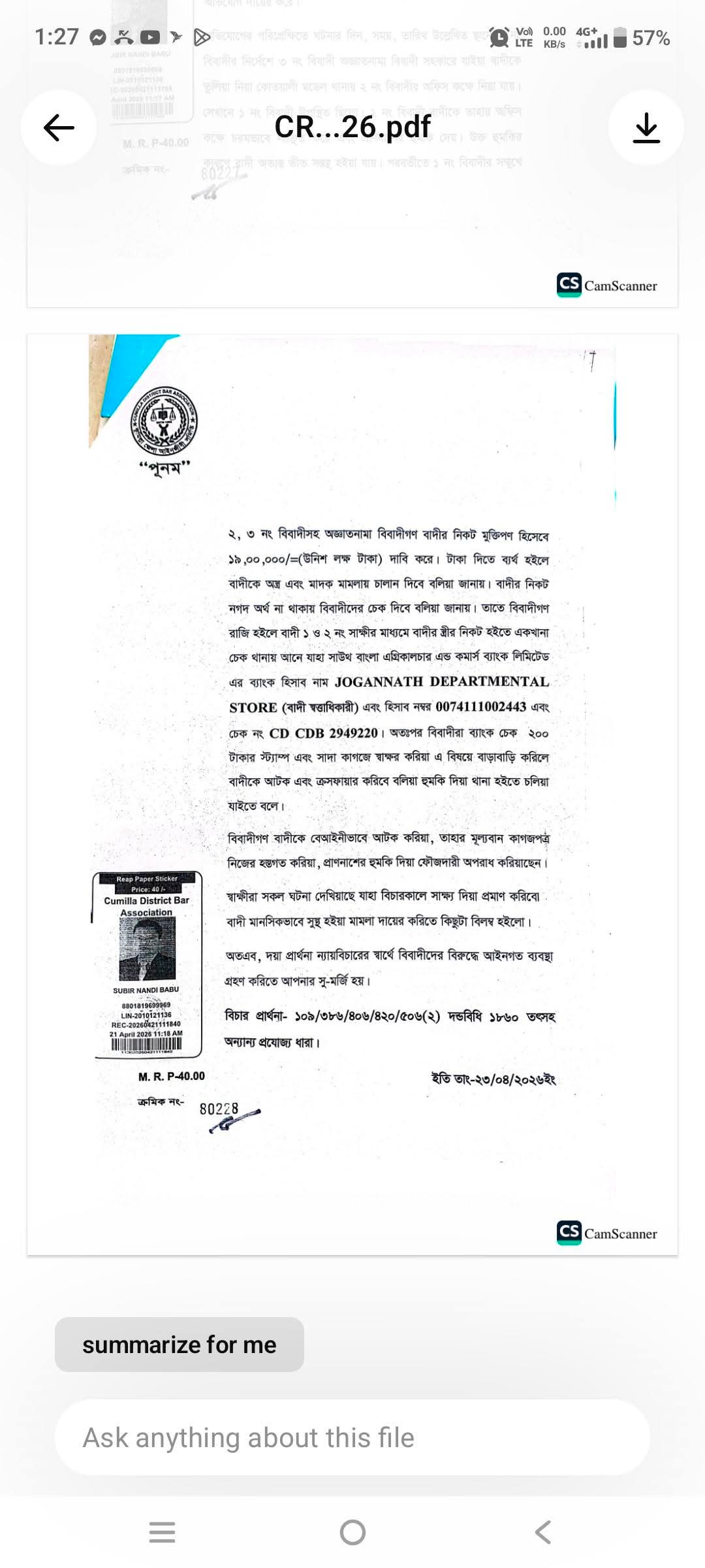 দুই পুলিশ কর্মকর্তাসহ তিনজনকে আসামি করে দায়ের হওয়া এ মামলাকে কেন্দ্র করে এলাকায় নেমে এসেছে চরম অনিশ্চয়তা ও আতঙ্ক।মামলার বাদী চন্দন কুমার সূত্রধর (পিতা: লক্ষন সূত্রধর) কুমিল্লার সিনিয়র জুডিশিয়াল ম্যাজিস্ট্রেট আদালত-১ এ মামলা দায়ের করেন।