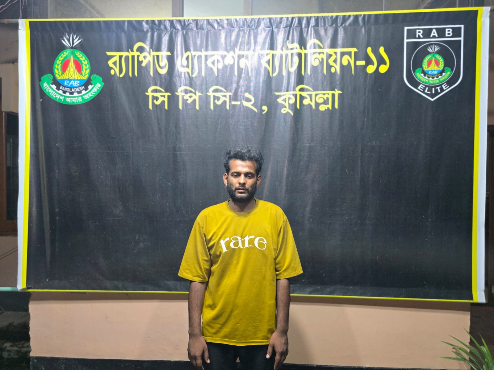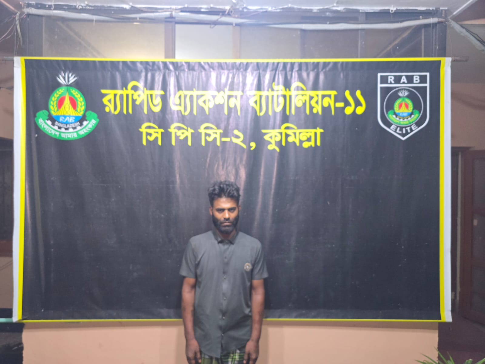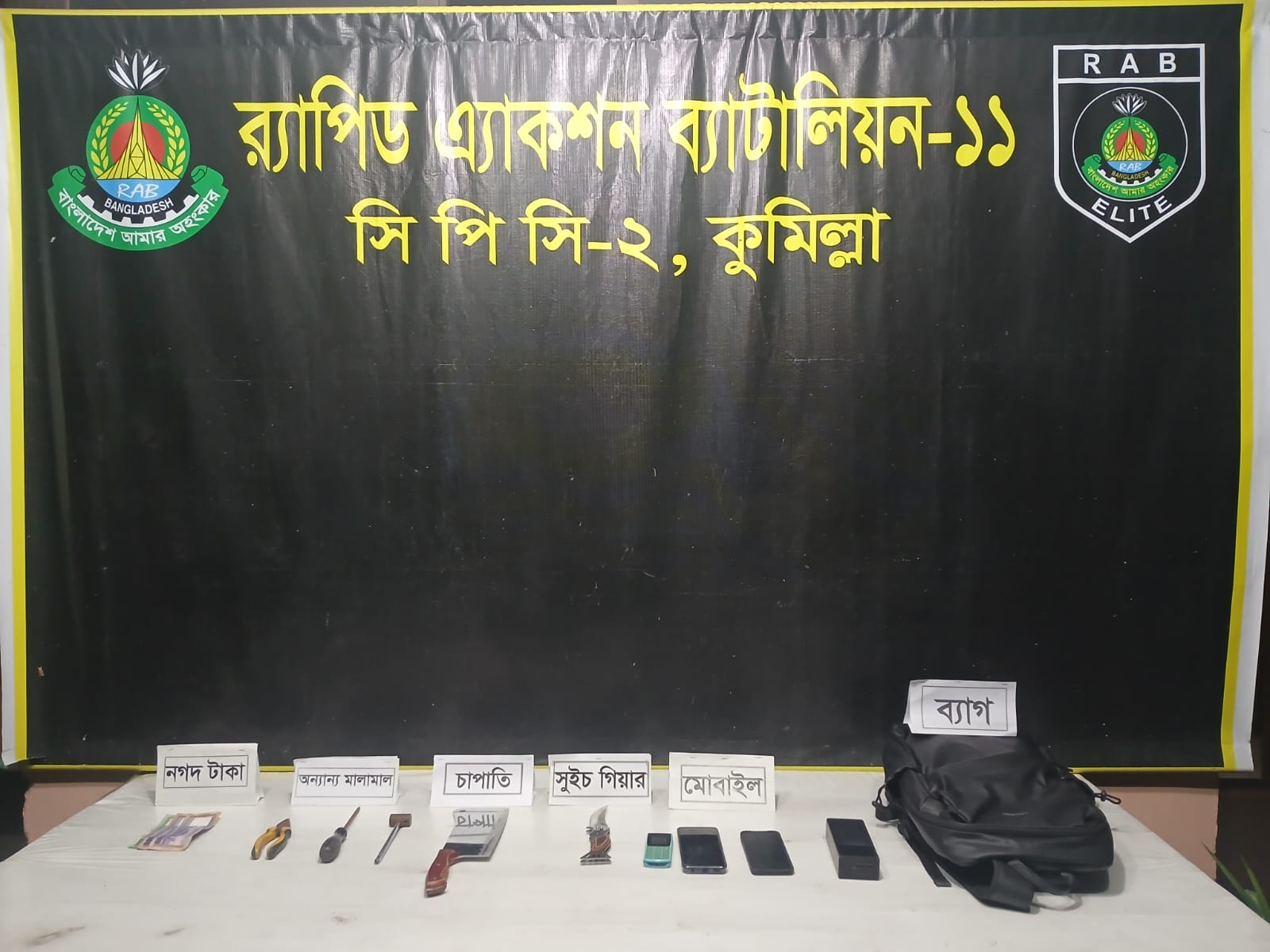 এরই প্রেক্ষিতে গোয়েন্দা নজরদারী, তথ্য প্রযুক্তির সহায়তা ও প্রাপ্ত গোপন সংবাদের ভিত্তিতে গত ২৬/০৪/২০২৬ ইং তারিখ বিভিন্ন সময়ে র্যাব-১১ এর একটি আভিযানিক দল কুমিল্লা জেলার বিভিন্ন এলাকায় অভিযান পরিচালনা করে উক্ত হত্যাকান্ডের সাথে জড়িত আসামী ১। মোঃ সোহাগ (৩৪), পিতা- মৃত নুর ইসলাম, মাতা- সাহিদা বেগম, সাং- ধর্মপুর, ২। ইসমাইল হোসেন জনি (২৮), পিতা-মৃত হারুন মিয়া, মাতা-ফাতেমা বেগম, সাং-ধর্মপুর, ৩। এমরান হোসেন @ হৃদয় (৩৪), পিতা- আমির হোসেন, মাতা- হাসনা বেগম, সাং- আমড়াতলী, ৪। রাহাত হোসেন জুয়েল(২৭), পিতা-মৃত হাবিবুর রহমান, মাতা-ঝর্না বেগম, সাং-আড়াইওড়া, ৫। মোঃ সুজন (৩২), পিতা- মৃত সজল মিয়া, মাতা-মৃত জহুরা বেগম, সাং- ধর্মপুর, সর্ব থানা কোতয়ালী মডেল, জেলা-কুমিল্লাদেরকে গ্রেফতার করে। এসময় গ্রেফতারকৃত আসামীদের নিকট হতে ভিকটিমের ব্যবহৃত ০১ টি এ্যান্ড্রয়েড মোবাইল, ০১ টি পাওয়ার ব্যাংক ও তার ব্যবহৃত পোষাকাদি সহ ০১ টি কাধ ব্যাগ উদ্ধার করা হয়। এছাড়াও আসামীদের নিকট হতে হত্যাকান্ডে ব্যবহৃত ০১টি সিএনজি, ০১ টি চাপাতি, ০১ টি সুইচ গিয়ার, ০১টি স্কু ড্রাইভার ও ০১ টি ফোরজিং হ্যামার, ০১টি প্লায়ার্স, ০২টি মোবাইল ও নগদ ২,৫০০/- টাকা উদ্ধার করা হয়।
