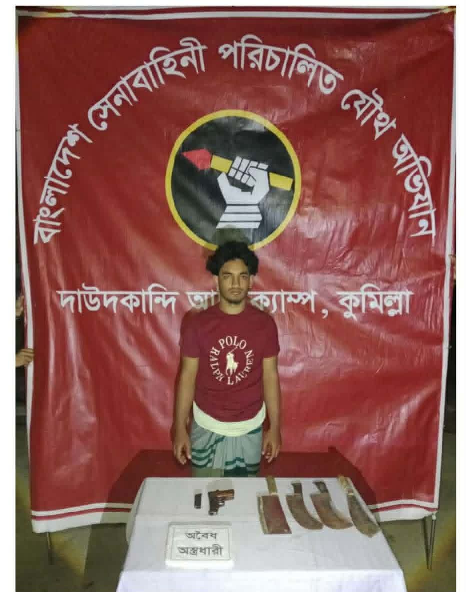 দাউদকান্দিতে যৌথ বাহিনীর অভিযানে দেশীয় ও বিদেশি অস্ত্রসহ একজন গ্রেপ্তার