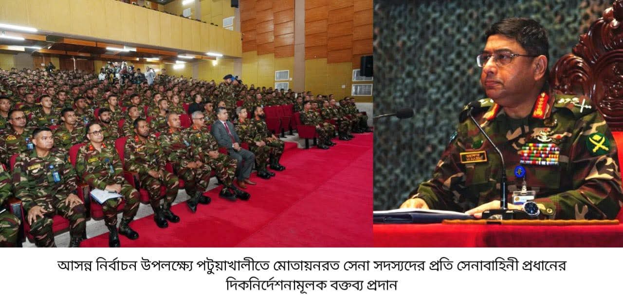 ত্রয়োদশ জাতীয় সংসদ নির্বাচন ও গণভোট- ২০২৬ উপলক্ষ্যে সেনাবাহিনী প্রধানের পটুয়াখালী ও খুলনা পরিদর্শন ও মতবিনিময় সভা। স্টাফ রিপোর্টার।। ঢাকা, ২৮ জানুয়ারি ২০২৬ (বুধবার): আজ সেনাবাহিনী প্রধান জেনারেল ওয়াকার-উজ-জামান, এসবিপি,