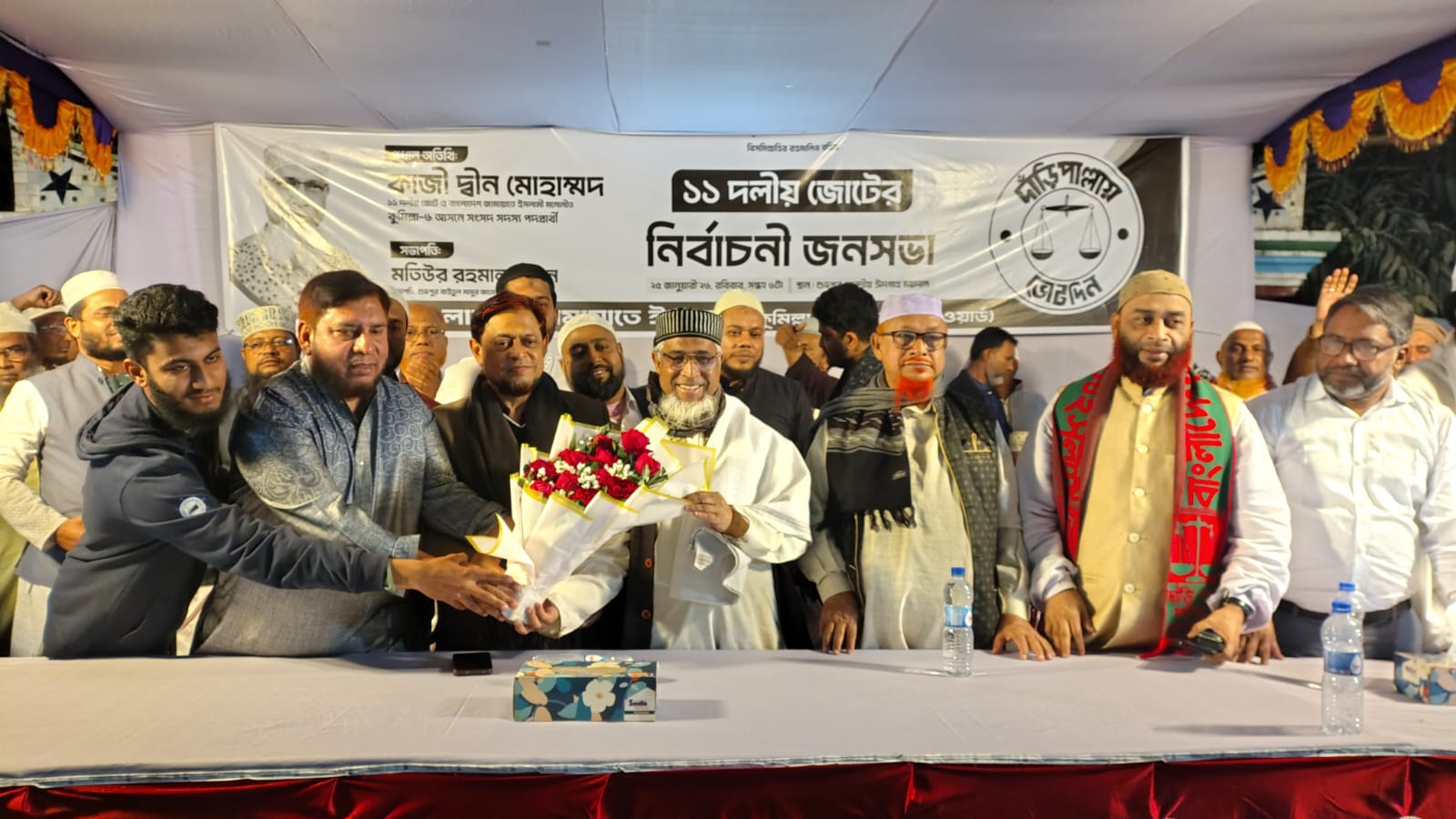 দাঁড়িপাল্লা প্রতীক নিয়ে ১০ দলিয় জোটের প্রার্থী কাজী দ্বীন মোহাম্মদের নির্বাচনী প্রচারনা উদ্বোধন তৌহিদ হোসেন সরকার।। কুমিল্লা–৬ (আদর্শ সদর, কুমিল্লা মহানগরী, সদর দক্ষিণ ও সেনানিবাস এলাকা) আসনে সংসদ সদস্য প্রার্থী